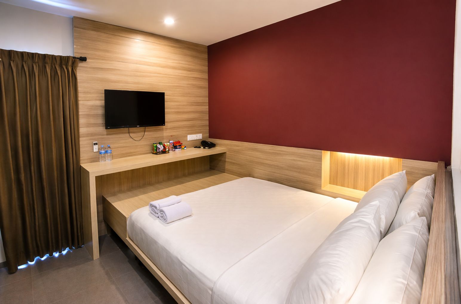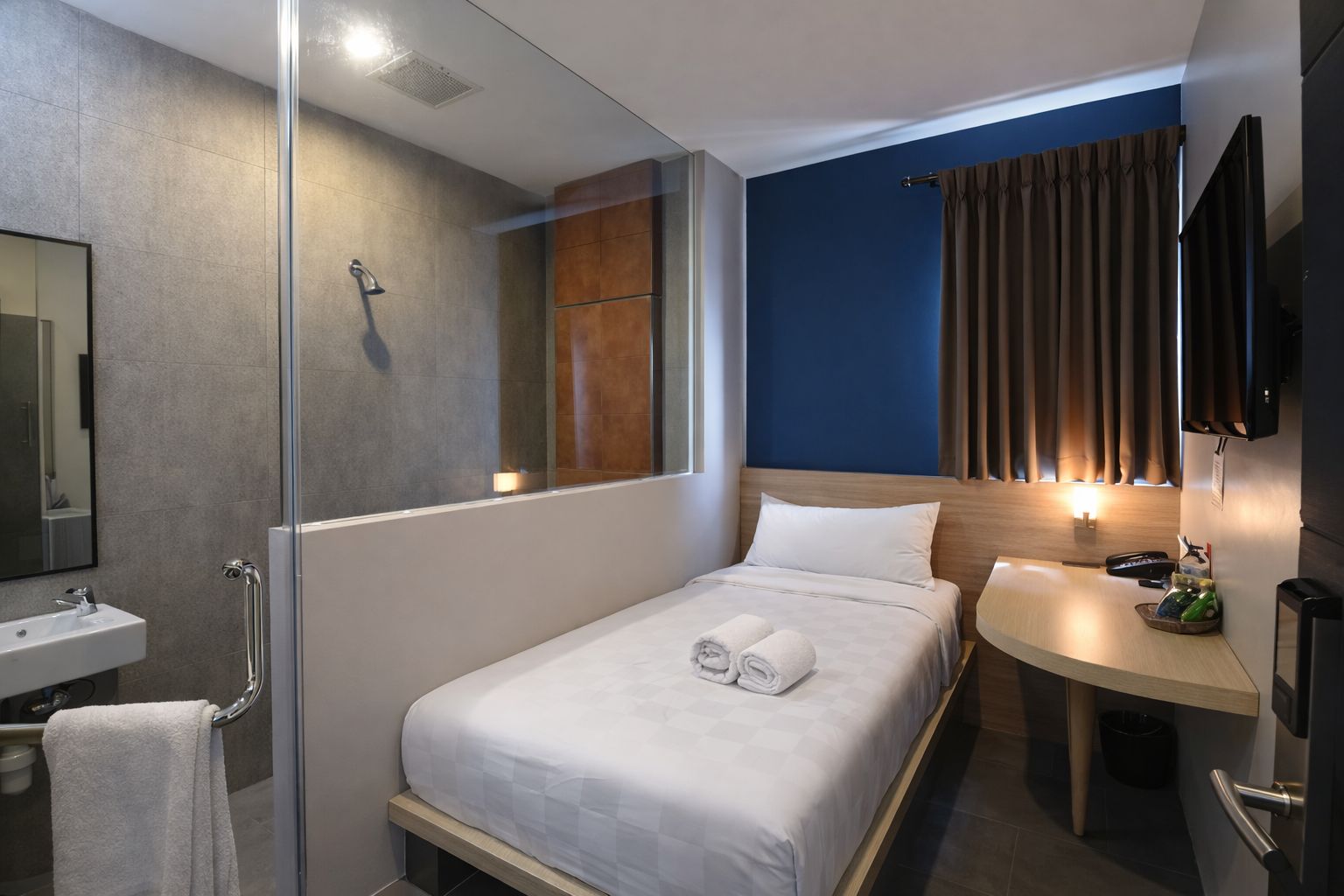 Terdiri dari 15 kamar bebas rokok dengan desain industrial.